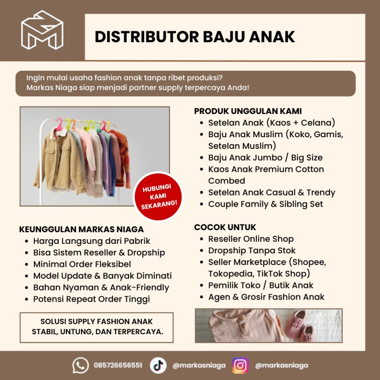 Tren fashion anak juga terus berkembang, mengikuti gaya orang dewasa dalam versi mini. Hal ini membuat pasar semakin luas dan dinamis. Dengan dukungan distributor yang tepat seperti Markas Niaga, Anda bisa memanfaatkan peluang ini secara maksimal.