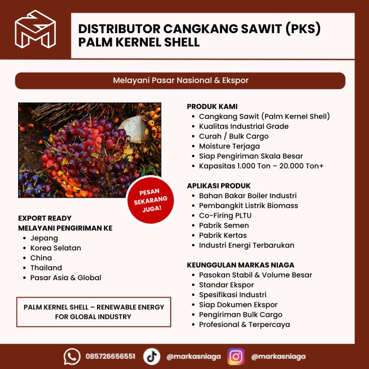 Jika Anda membutuhkan pasokan cangkang sawit berkualitas untuk industri atau ekspor, segera hubungi distributor terpercaya.