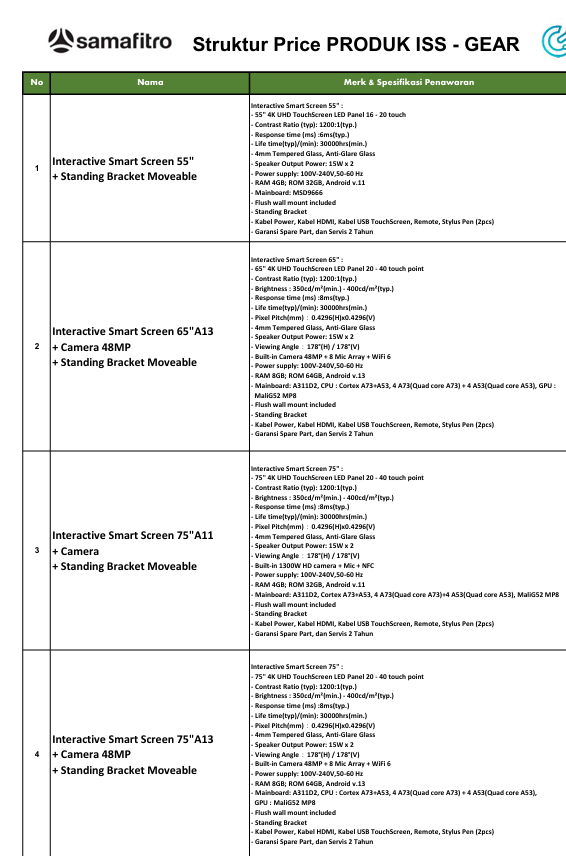 Produsen/Distributor/Supplier/Penyedia/Jual Interactive Smart Screen 55″ + Standing Bracket Moveable Untuk Kelas, Kantor, dan Ruang Presentasi Modern
