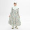 - Desain Modis – Detail ruffle dan kerutan tunik serta motif pada kerudung menghadirkan penampilan stylish bagi anak.